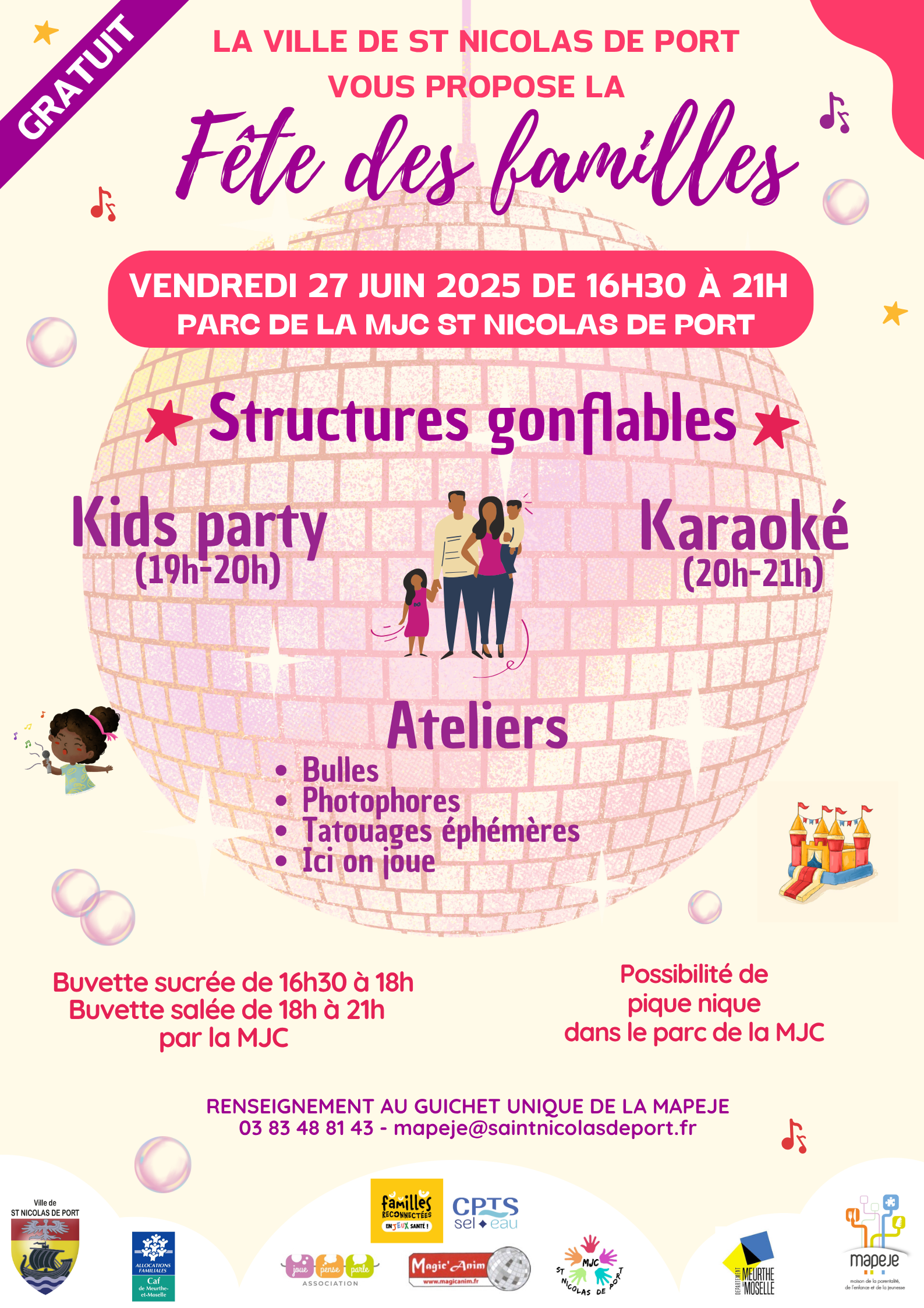 Dans le cadre du programme FREJ Santé, à l’occasion de la Fête des Familles, nous vous donnons rendez-vous au parc de la MJC Malraux à Saint Nicolas de Port, le vendredi 27 juin de 16h30 à 21h, pour une expérience unique autour du jeu libre créatif et actif, une alternative aux écrans simple, gratuite et favorable à la santé globale des bébés et des enfants ! 👶🧠🎨🏃♀️
